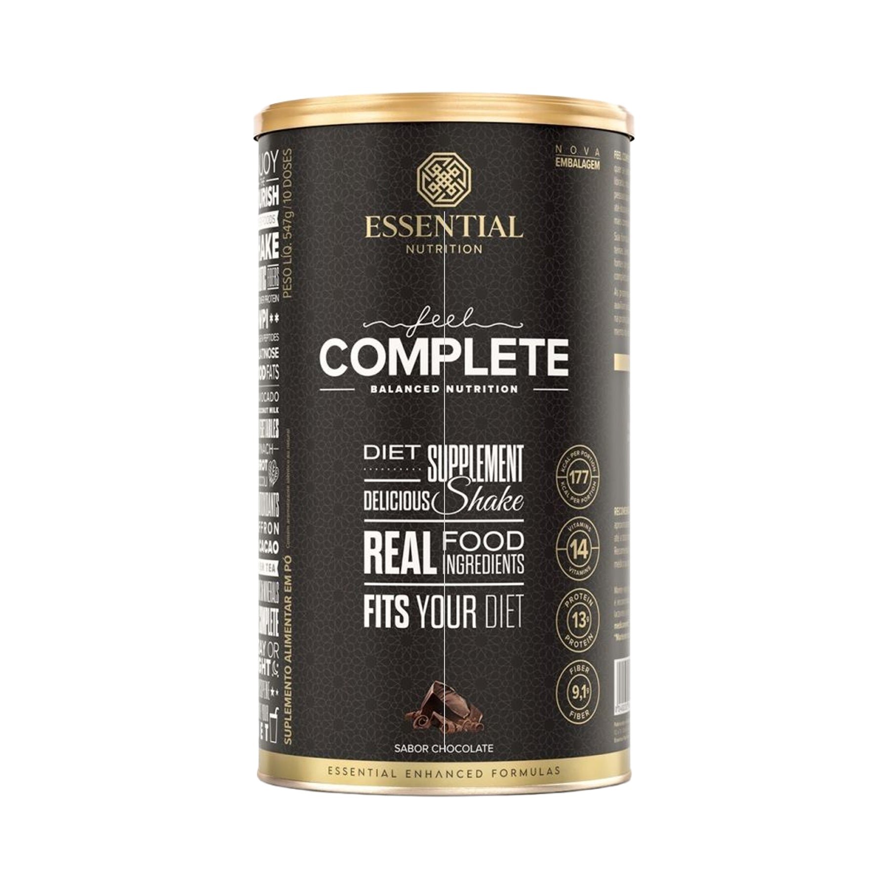 Feel Complete da ESSENTIAL é um shake nutricionalmente completo, prático e saboroso. Um grande aliado para adultos em diversos tipos de dieta ou idosos que procuram opções balanceadas. Além disso, ele entrega macro e micronutrientes em sua melhor forma, tudo isso com um delicioso sabor de chocolate e 177 calorias. Feito com alimentos de verdade Feel Complete fornece um blend de vegetais naturalmente ricos em fitonutrientes que vêm da couve, cenoura, do espinafre, brócolis, açafrão, chá-verde, feijão branco e cacau puro, todos ingredientes com origem natural que têm papel fundamental para o nosso organismo. Feel Complete é mais um produto Essential Enhanced Formulas A linha Enhanced Formulas reúne produtos que compreendem o funcionamento do nosso corpo, a sinergia entre as reações químicas e as múltiplas propriedades que podem ser conquistadas através da combinação dos nutrientes corretos.
